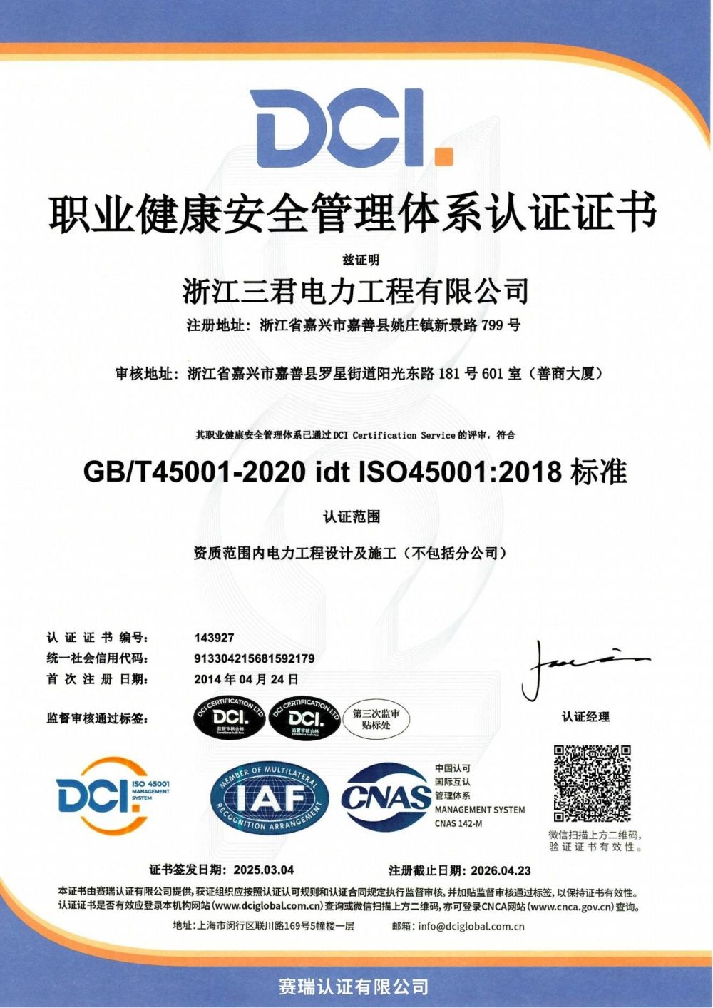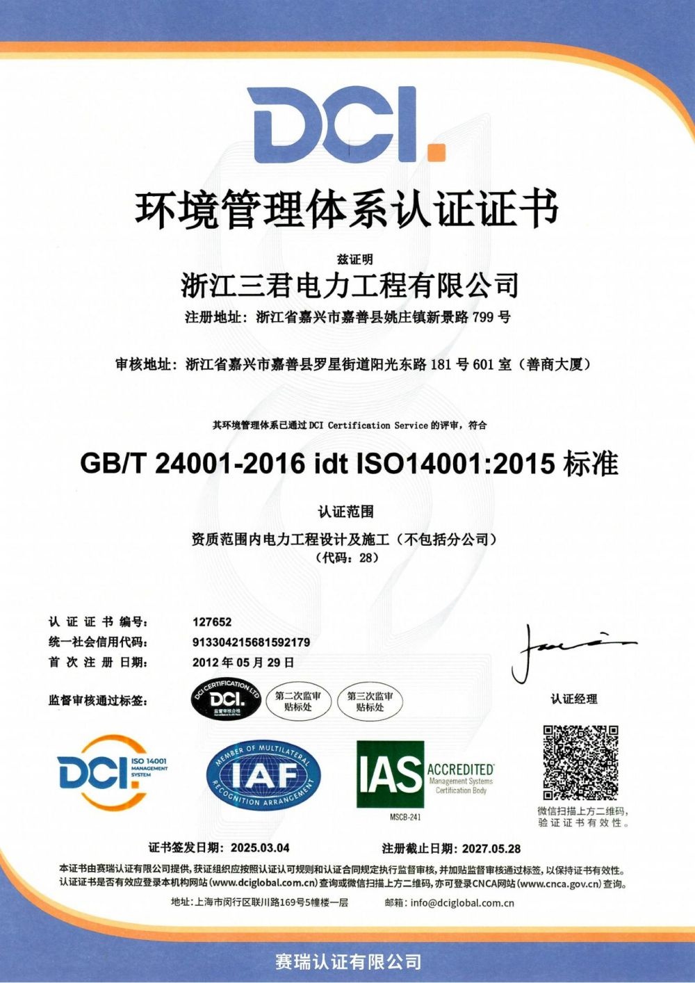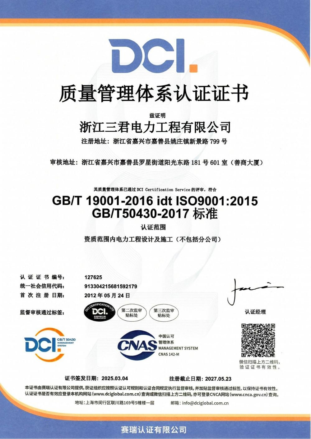 浙江三君電力工程有限公司立志于服務(wù)電力及新能源事業(yè),已擁有電力工程施工總承包貳級(jí)、輸變電工程專(zhuān)業(yè)承包貳級(jí)、承裝(修、試)電力施工許可證貳級(jí)、建筑機(jī)電安裝工程專(zhuān)業(yè)承包貳級(jí)、城市及道路照明工程專(zhuān)業(yè)承包貳級(jí)、地基基礎(chǔ)工程專(zhuān)業(yè)承包貳級(jí)、電力行業(yè)工程設(shè)計(jì)專(zhuān)業(yè)乙級(jí)、施工勞務(wù)不分等級(jí)、安全生產(chǎn)許可證等多項(xiàng)資質(zhì),可以從事220kV及以下電壓等級(jí)電力設(shè)施的安裝、維修、試驗(yàn)工程,承接工業(yè)和公共、民用建設(shè)項(xiàng)目的配電設(shè)備、線路、管道的安裝等業(yè)務(wù)。公司配備了各種先進(jìn)施工機(jī)械設(shè)備及試驗(yàn)設(shè)備,是具有電力設(shè)備設(shè)施安裝、系統(tǒng)調(diào)試、電力工程設(shè)計(jì)、運(yùn)維的綜合性的工程公司。公司產(chǎn)品和服務(wù)均通過(guò)ISO9001質(zhì)量管理和GB/T50430工程建設(shè)施工企業(yè)質(zhì)量管理、ISO14001環(huán)境管理、ISO45001職業(yè)健康的體系認(rèn)證、IS050001能源管理體系、綠色電力認(rèn)證,管理工作更是向國(guó)際化接軌。