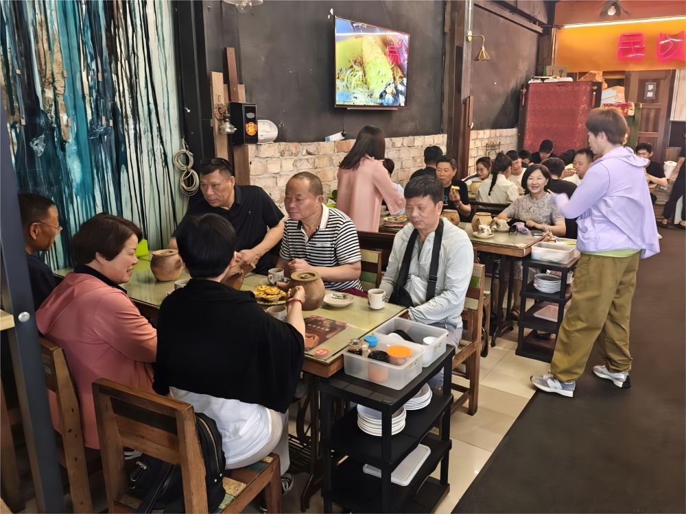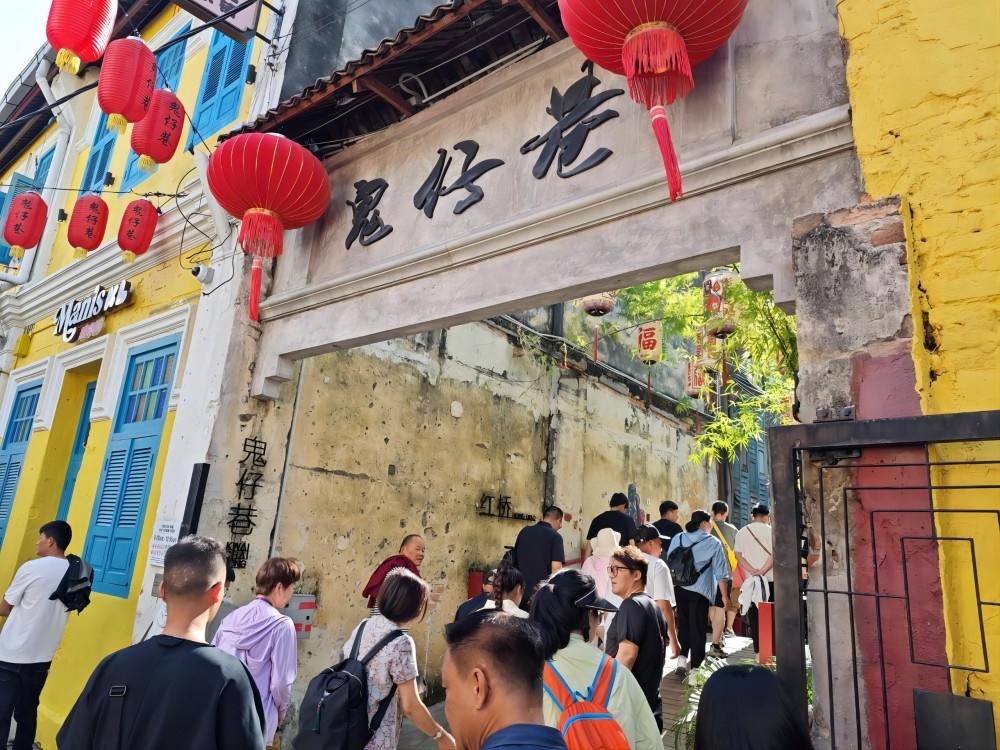 鬼仔巷的小巷深處,大家邊欣賞壁畫邊打卡拍照,彼此分享著發(fā)現(xiàn)的趣事與笑料,氛圍溫馨而熱烈。